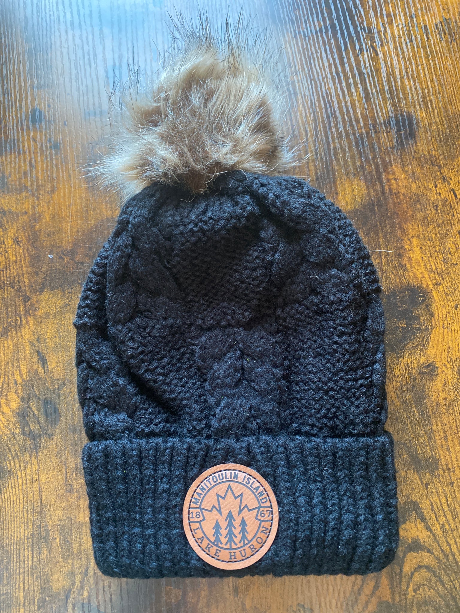 Manitoulin Island Lake Huron knit hat with patch and Pom